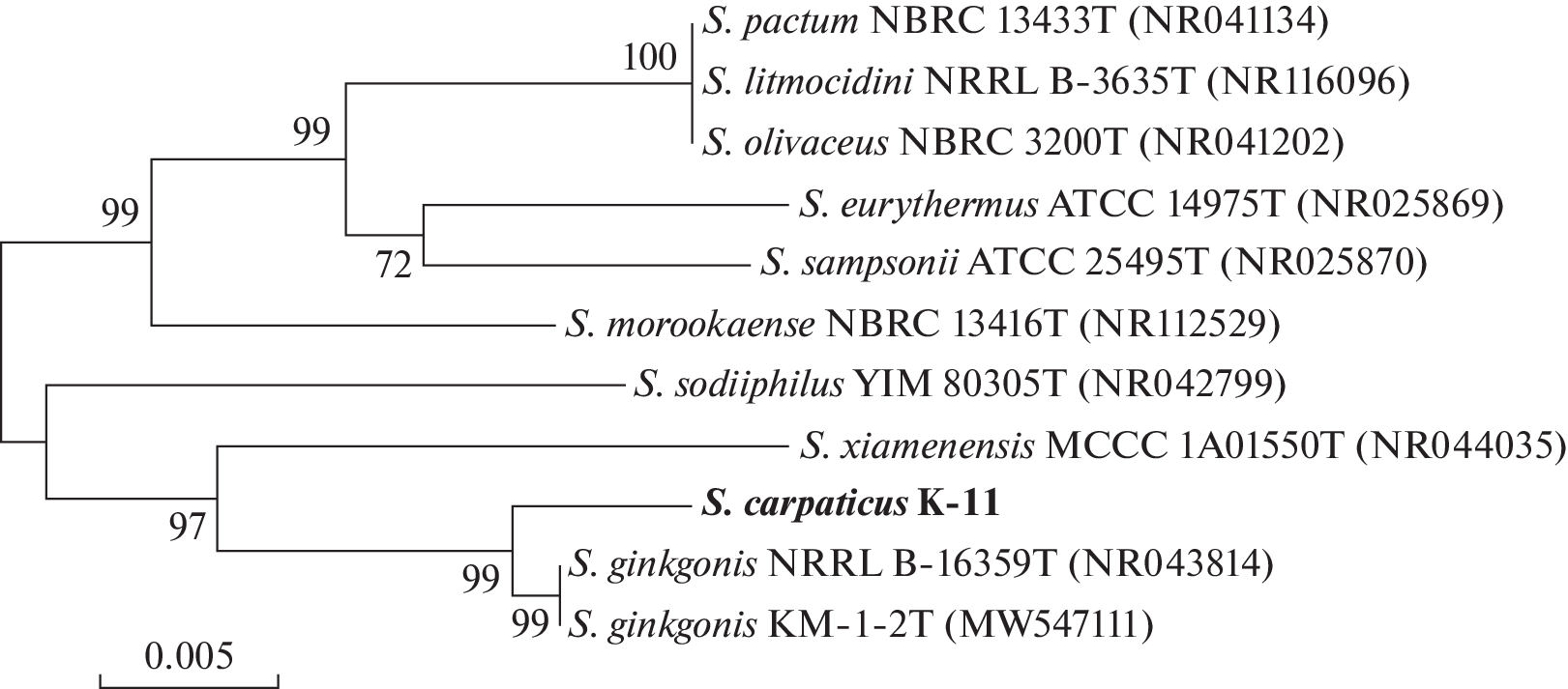 - Pylro V.S., Dias A.C.F., Andreote C.C.F., Andreote F.D., Mello D.E., Varani A., Figueiredo D.E., Ribeiro I.A., Kitano I.T., Almeida D.E., Bernardo E.R. Draft genomic sequences of Streptomyces misionensis ACT66 and Streptomyces albidoflavus act77, bacteria with potential application for phytopathogen biocontrol // Microbiol. Resour. Announc. 2019. V. 8. № 36. P. 118‒125. https://doi.org/10.1128/MRA.00949-19