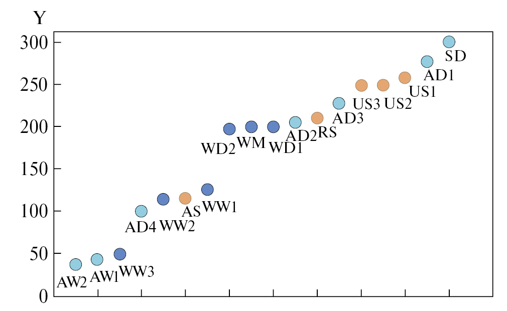 Рис. 4. Индекс разнообразия Шеннона (ось Y). Наименьшее разнообразие ASV филотипов наблюдается в образцах AW2, WW3, AW1, AD4 и WW2. Наибольшее разнообразие ASV филотипов выявлено в образцах ризосферы (RS), с плато Устюрт и из оз. Судочье (SD)