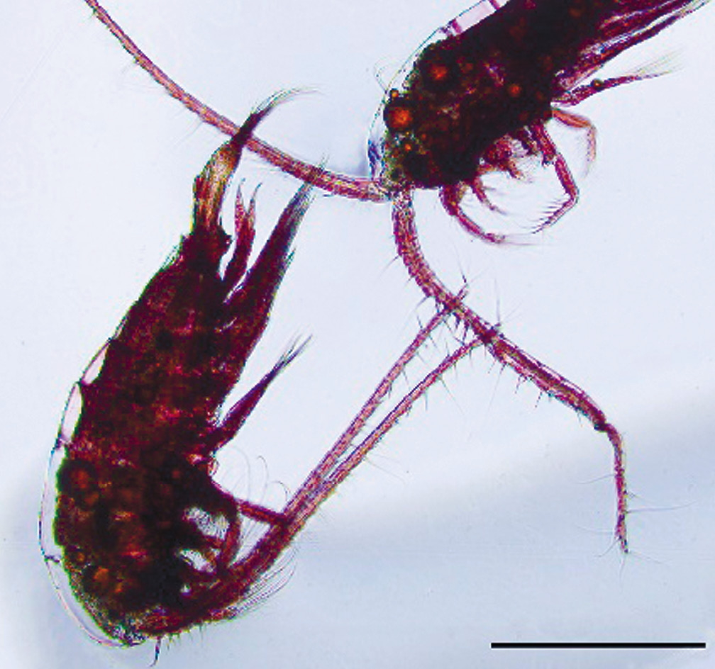 Рис. 1. Внешний вид веслоногих рачков рода Diaptomus, обитающих в водной толще оз. Шобайдак-Кель. Масштабная метка соответствует 500 мкм.