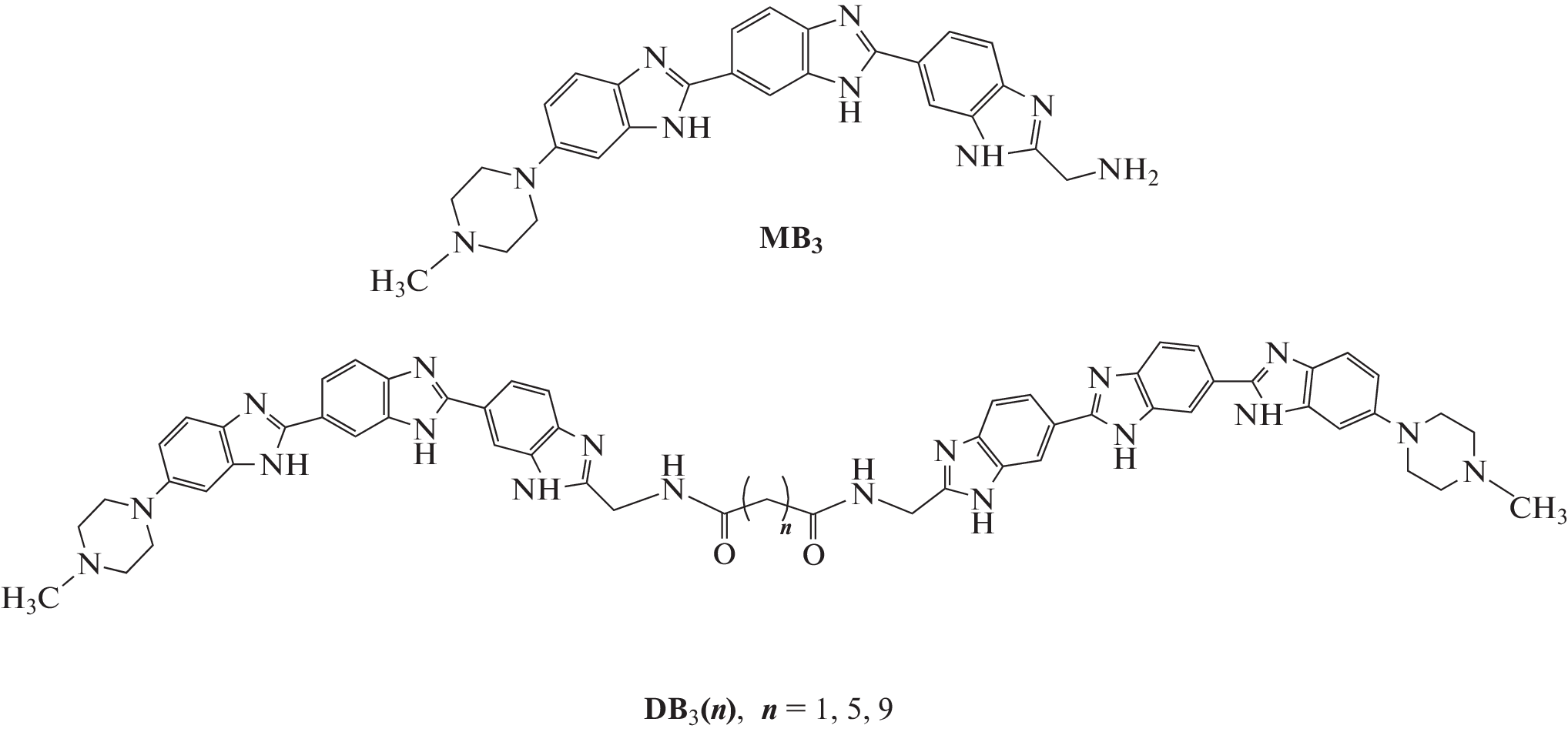 Лиганды, специфичные к определенным последовательностям пар оснований ДНК. XIX. Синтез, спектральные характеристики, вирусологические и биохимические исследования флуоресцентных симметричных димерных трисбензимидазолов DB3(n)
