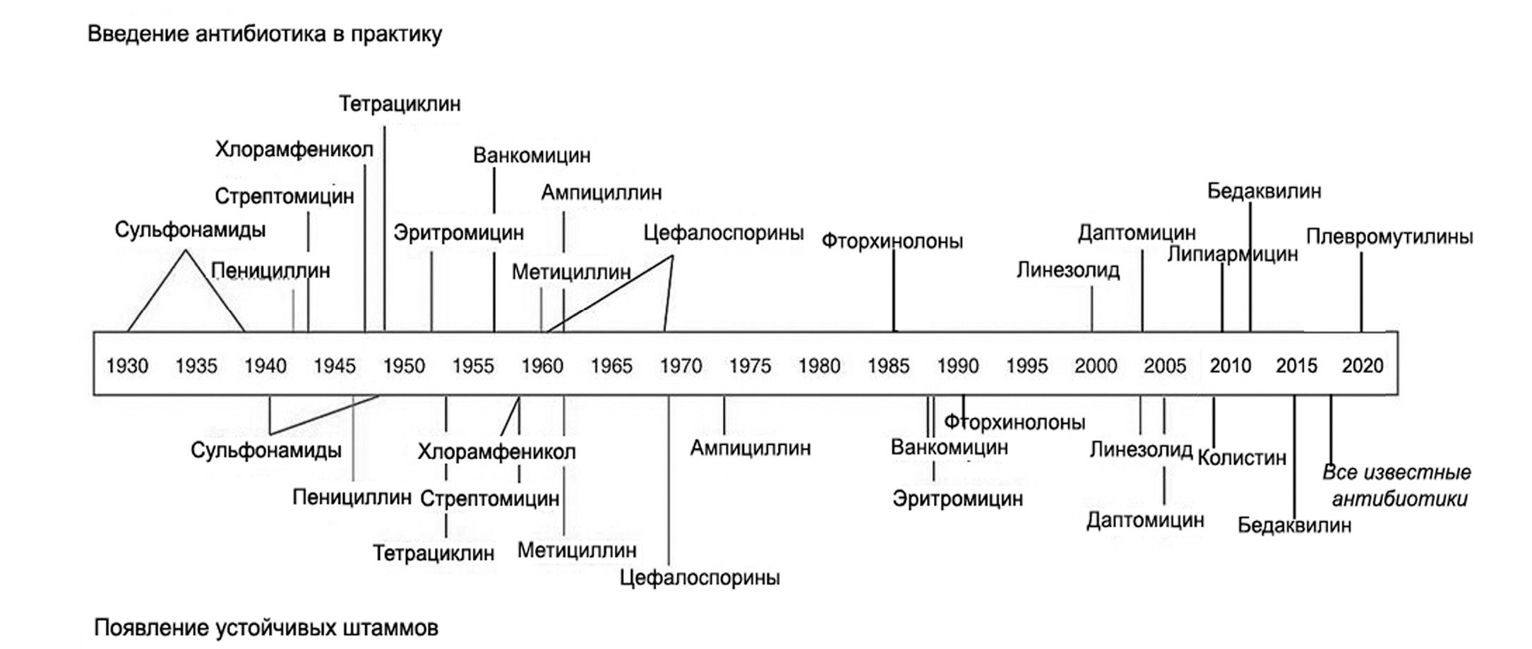 Открытие в 1928 г. Александром Флемингом пенициллина – первого коммерчески доступного природного антибиотика, и его введение в практику в 1940-е годы ознаменовало начало “золотого века” антибиотиков, совершивших мировую революцию в лечении бактериальных инфекций. Однако уже в 1942 г. появились сообщения об устойчивости к пенициллину золотистого стафилококка, а затем и у других микробов (Centers for Disease Control and Prevention (2020) About antibiotic resistance. https://www.cdc.gov/drug_resistance/about.html).