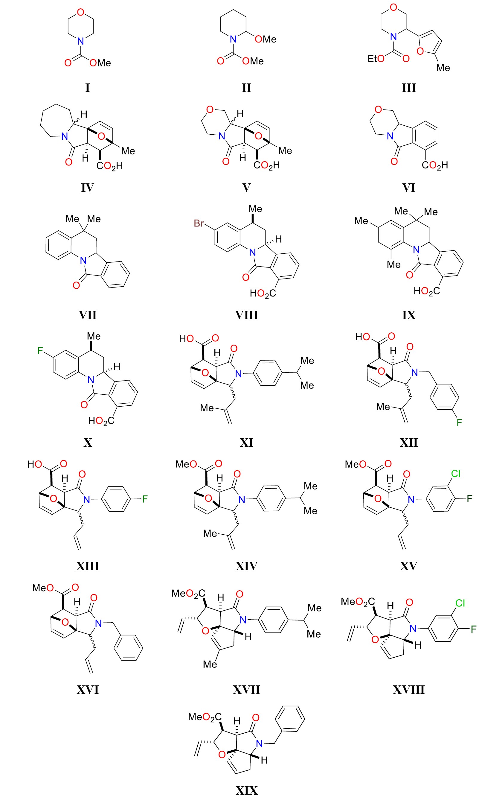 Рис. 1. Структуры соединений I‒XIX.