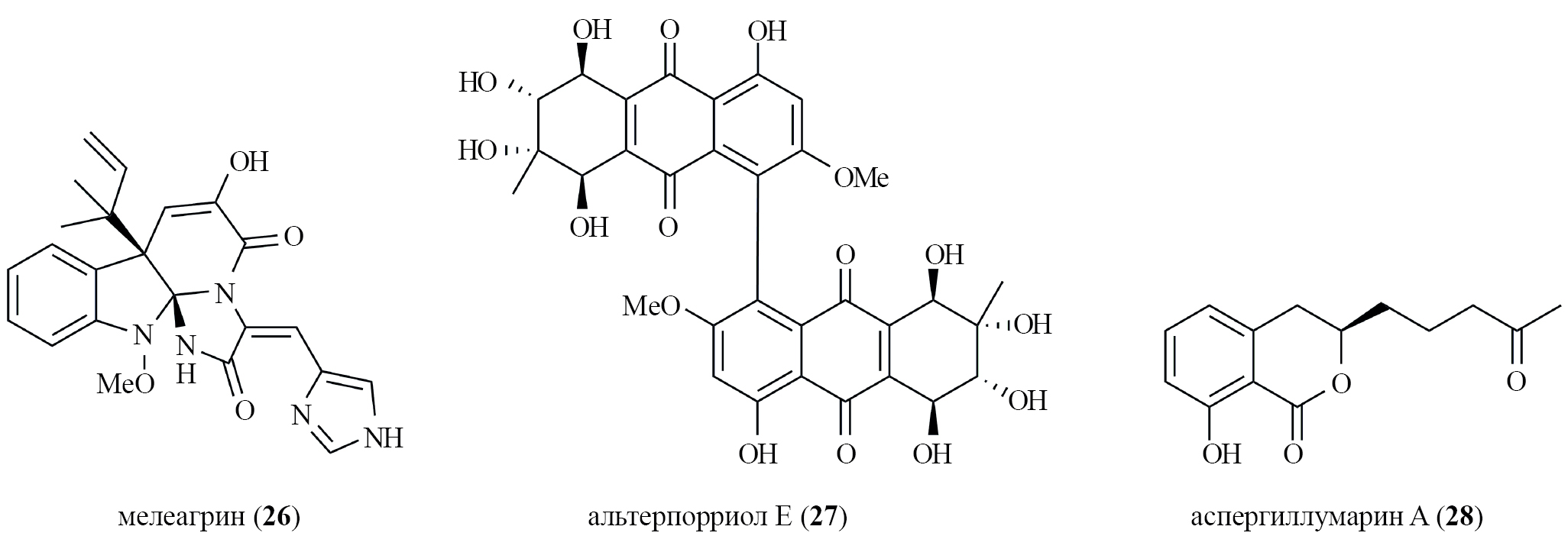 Рис. 7. Структуры вторичных метаболитов морских грибов — ингибиторов ДНК-праймаз бактерий.