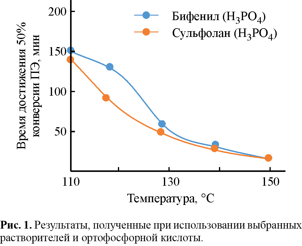 Вещества, использованные в качестве растворителей, – сульфолан, бифенил, дифенилоксид, хинолин, мезителен, псевдокумол и N-метил-2-пирролидон – подбирались с учетом их термостабильности в выбранном температурном диапазоне и различных показателей диэлектрической проницаемости.