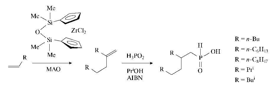 Рис. 2. Схема получения разветвленных алкилфосфиновых кислот [8].
