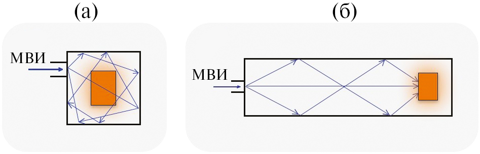 Рис. 2. Типы распределения микроволнового излучения: а) мультимодовая система; б) мономодовая система.