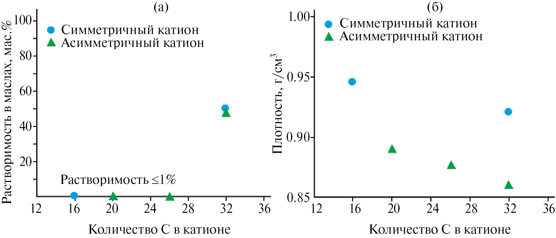 Растворимость ИЖ в маслах различных видов — важнейший фактор их применения. В большинстве исследований зарубежных авторов [5, 14, 15] обсуждаются различные аспекты растворимости ИЖ в маслах различной природы.