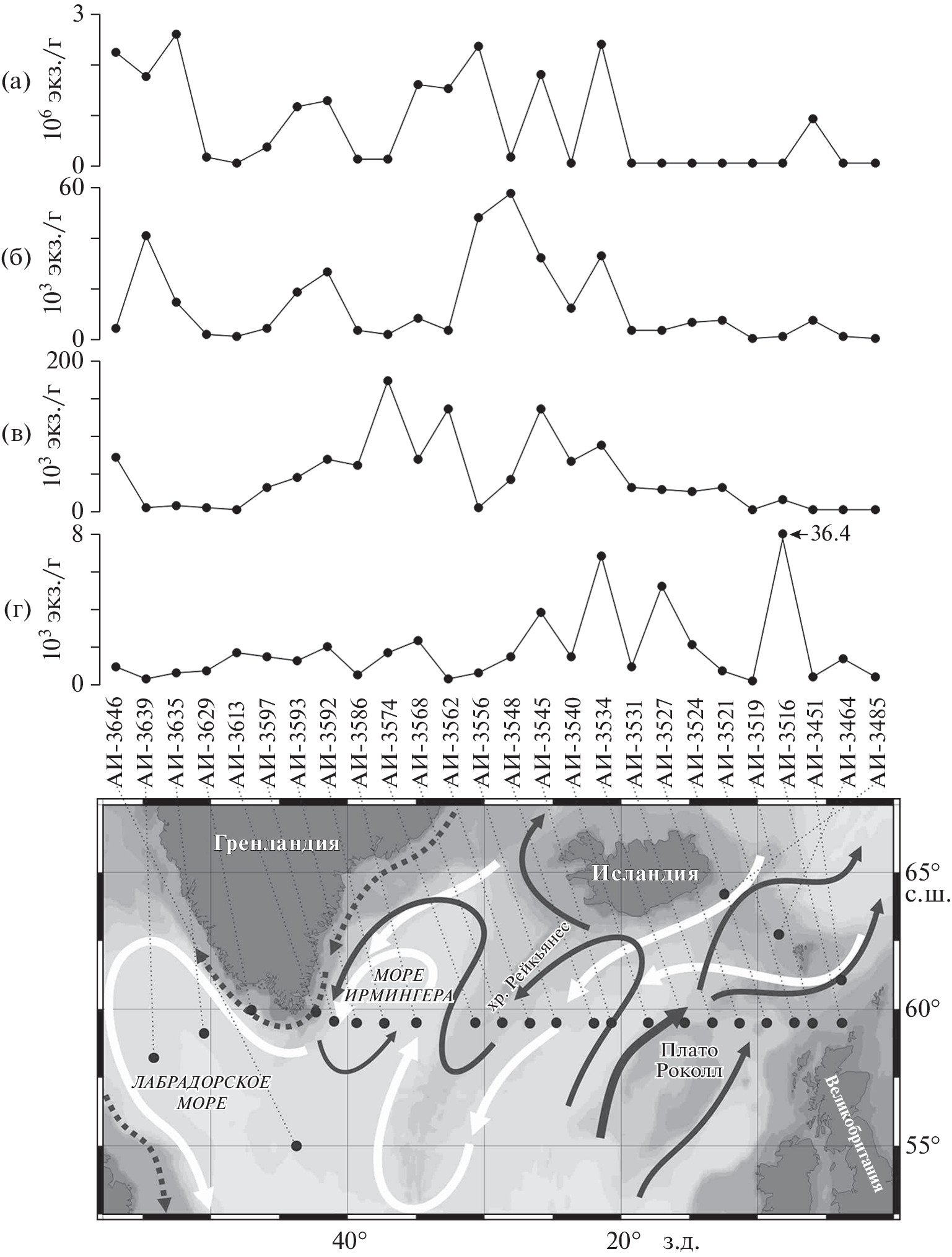 - Ganssen G.M., Kroon D. The isotopic signature of planktonic foraminifera from NE Atlantic surface sediments: implications for the reconstruction of past oceanic conditions // Journal of the Geological Society. 2000. V. 157. P. 693–699. https://doi.org/10.1144/jgs.157.3