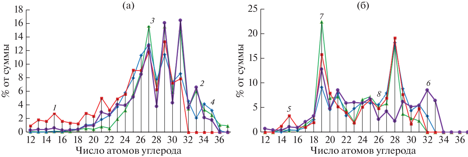 - Nishumura M., Baker E.W. Possible origin of n-alkanes with remarkable even-to-odd predominance in recent marine sediments // Geochim. Cosmochim. Acta. 1986. V. 50. № 2. P. 299–305.