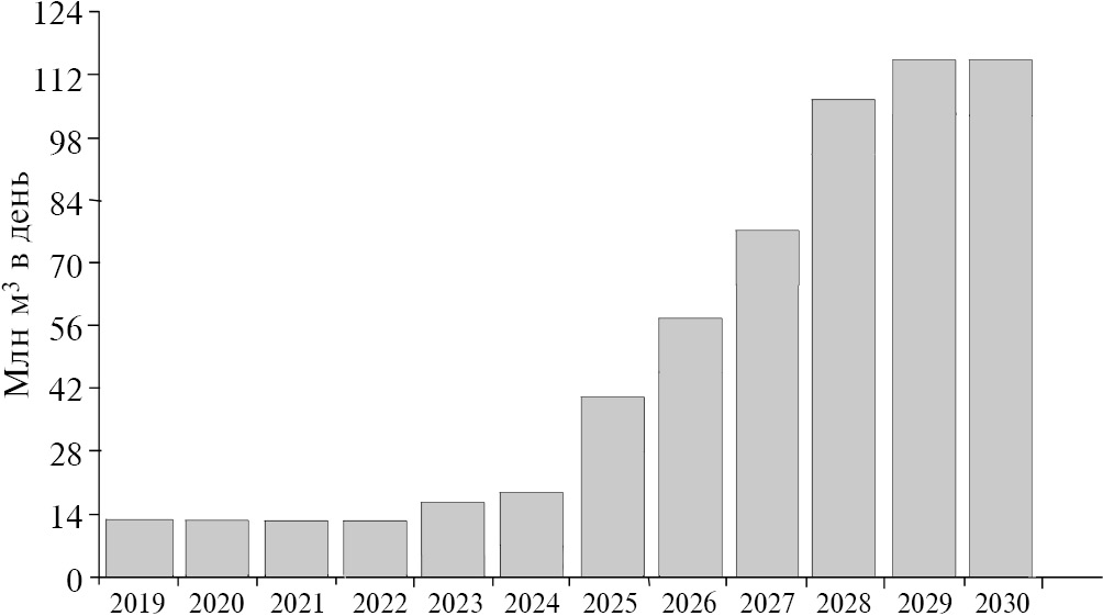 Рис. 5. Добыча газа в Мозамбике 2019–2030 гг. [24].