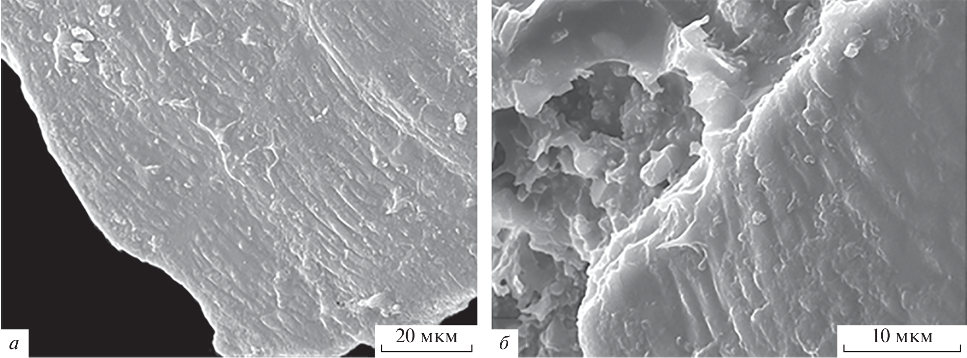 The structure and microstructure of the shell substance Acrotretella sp. on the protegulum, brephic and adult shell. The structure of the secondary layer, represented by interlayers with columnar-lamellar and spherulite structures, is characteristic. Wrinkles are developed along the edges of the shell.