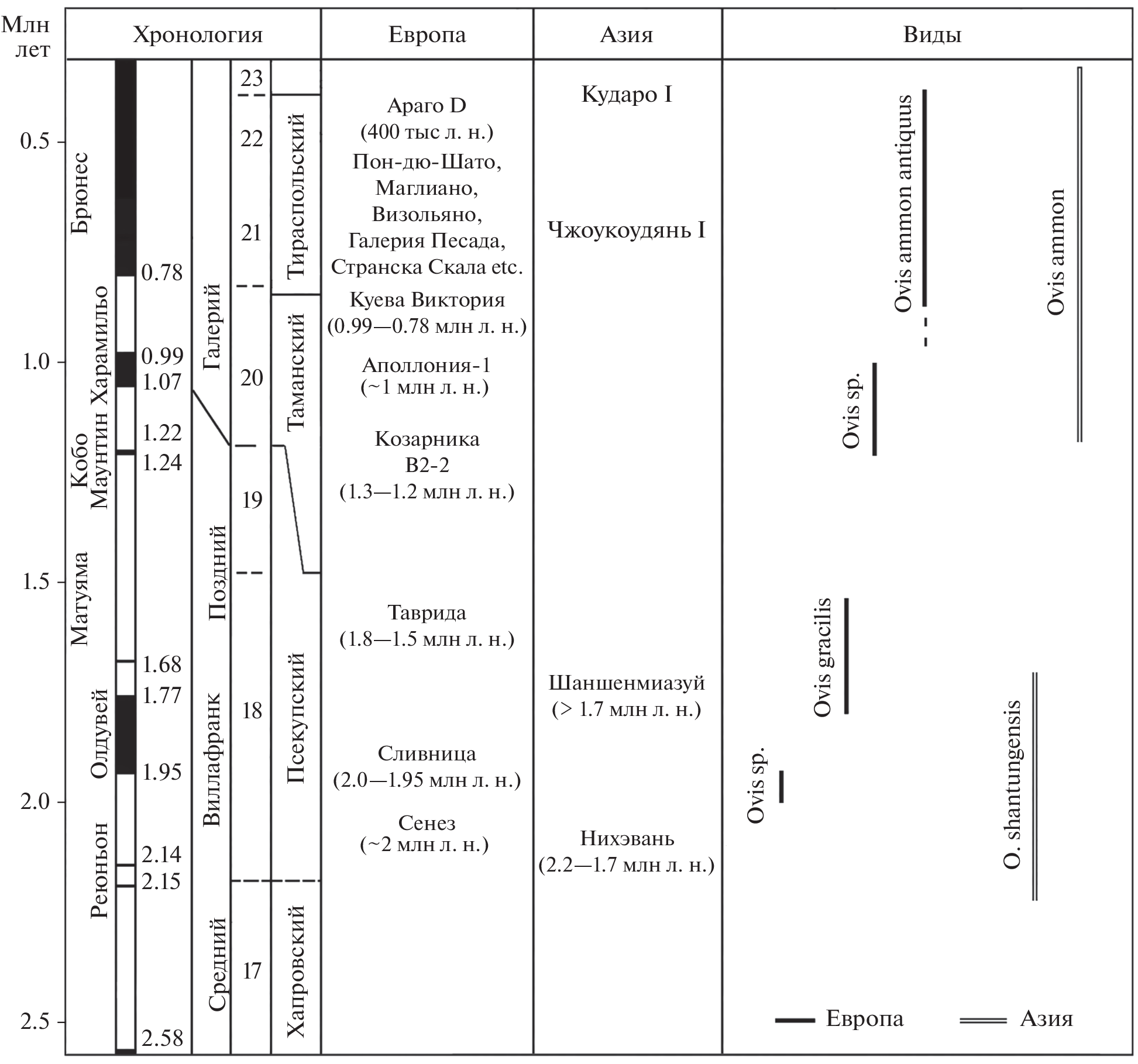 - Wang X., Li Q., Takeuchi G.T. Out of Tibet: an early sheep from the Pliocene of Tibet, Protovis himalayensis, gen. et sp. nov. (Bovidae, Caprini), and origin of Ice Age mountain sheep // J. Vertebr. Paleontol. 2016. e1169190. 12 p.