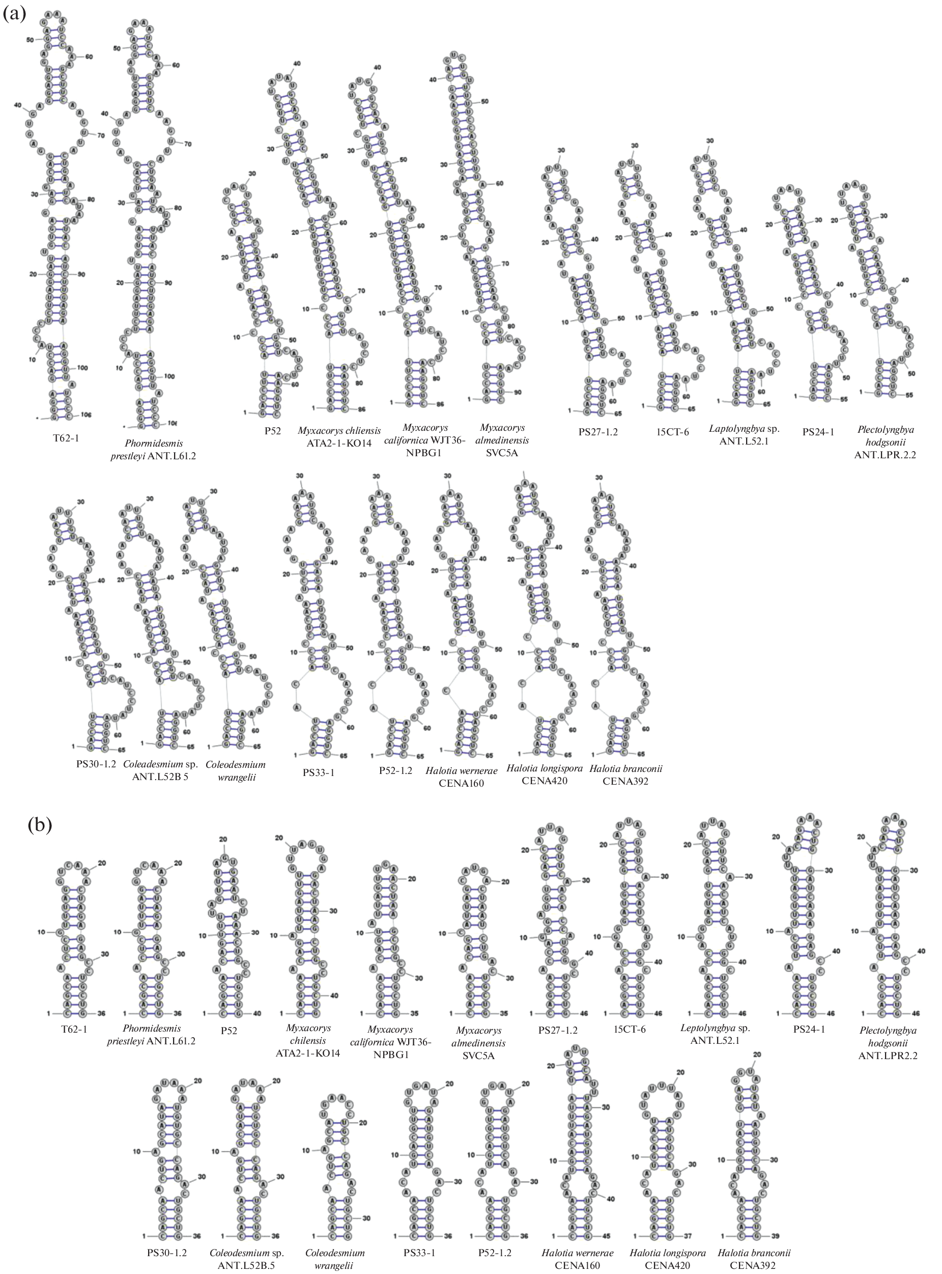- Iteman I., Rippka R., Tandeau de Marsac N., Herdman M. Comparison of conserved structural and regulatory domains within divergent 16S rRNA spacer sequences of Cyanobacteria // Microbiology. 2000. V. 146. P. 1275–1286. https://doi.org/10.1099/00221287-146-6-1275