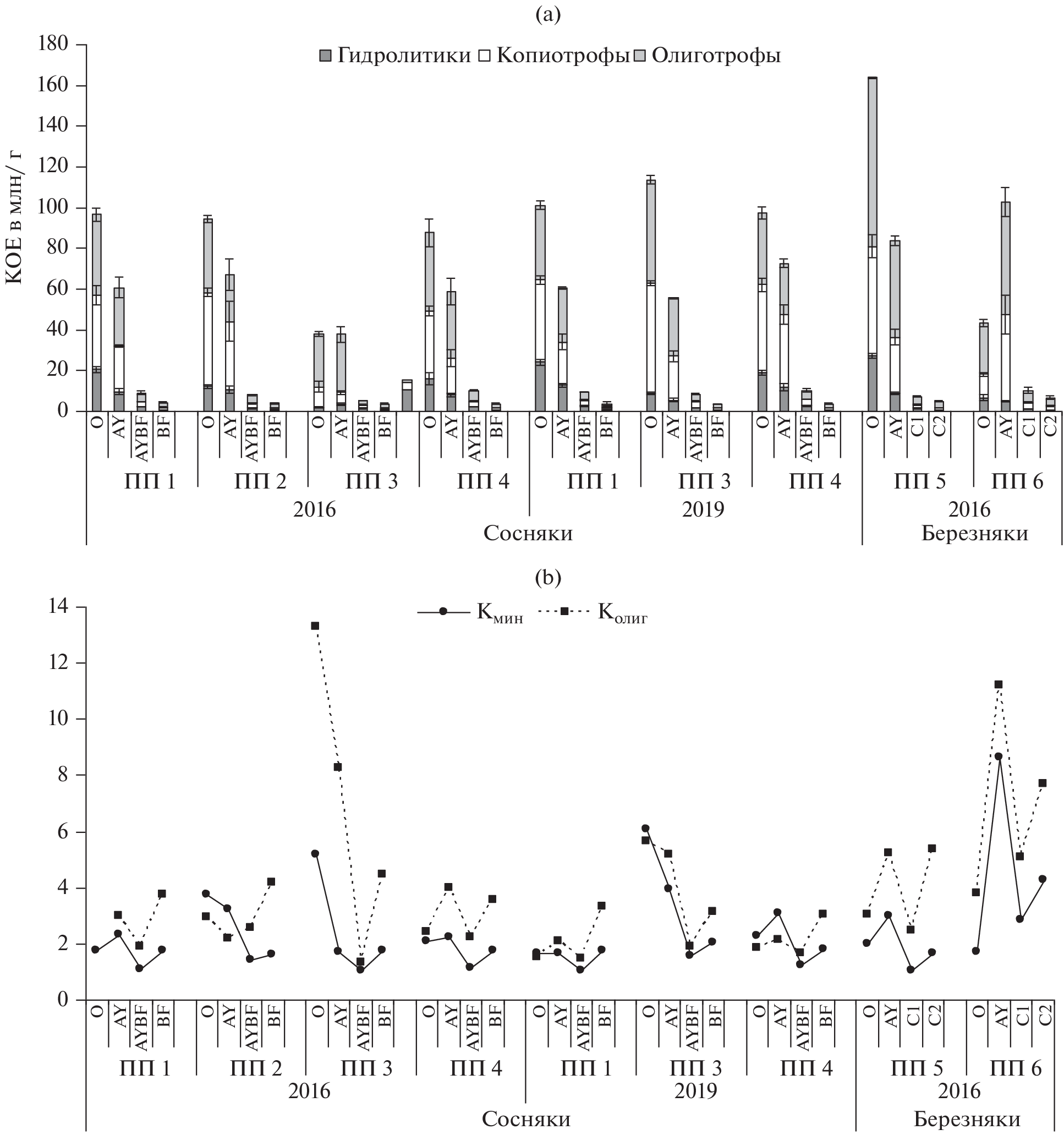 - Anderson T.-H., Domsch K.H. Application of eco-physiological quotients (qCO2 and qD) on microbial biomasses from soils of different cropping histories // Soil Biol. Biochem. 1990. V. 22. P. 251–255.https://doi.org/10.1016/0038-0717(90)90094-G