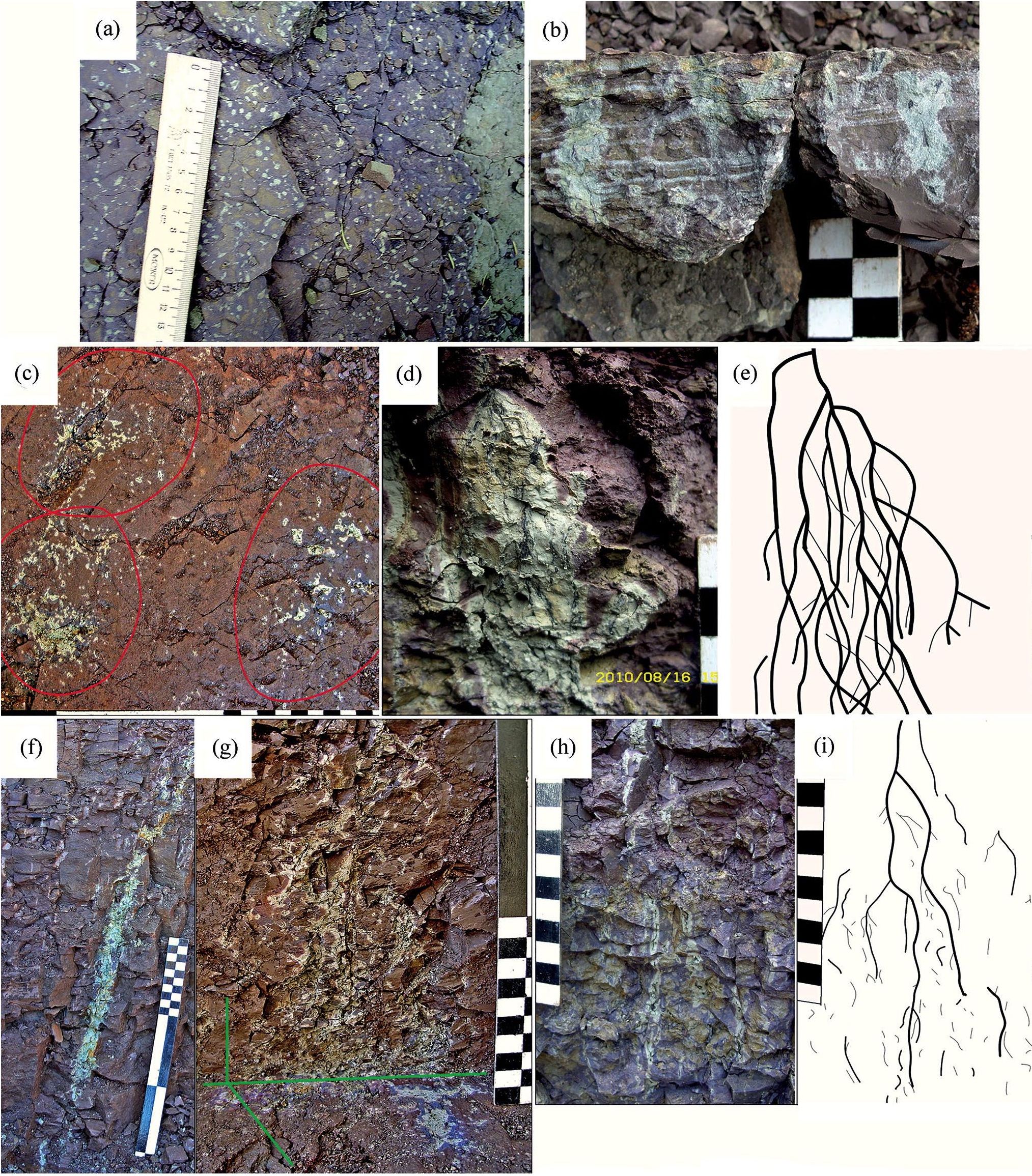 На участках латерального замещения зеленоцветных отложений красноцветными в некоторых разрезах зеленоцветных пород отмечаются признаки девонского педогенеза: небольшие (диаметром до 5 мм) корневые трубки, ветвящиеся сверху вниз и заполненные железистыми охрами; чрезвычайно редко отмечаются углефицированные инситные корни. Редкие находки корневых систем в преимущественно зеленоцветных отложениях объясняются не отсутствием растительности на соответствующих территориях, а иными причинами. Во-первых, зеленоцветные породы обнажаются в довольно крутых обрывах слабо доступных для детального исследования, во-вторых, палеопочвенные горизонты (с корнями) ничем не отличаются от пород субстрата и с расстояния не определяются, и, в-третьих, при существовавших условиях осадконакопления корневые системы не сохранялись [20].