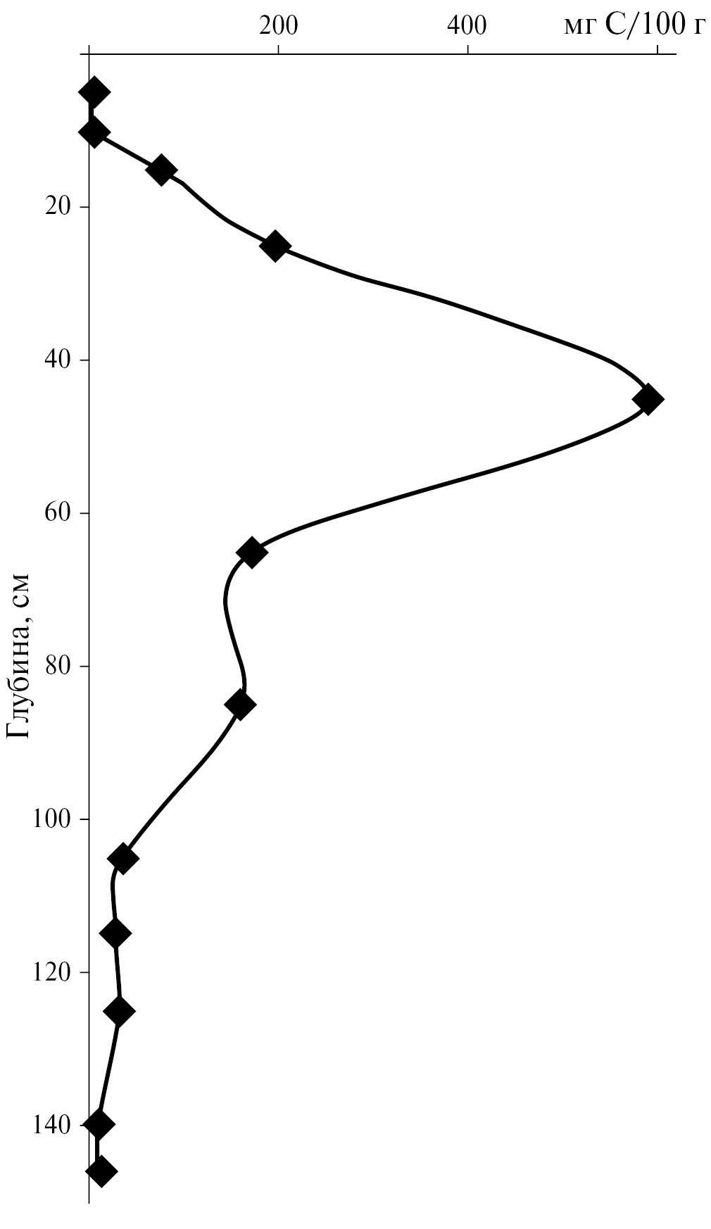 В пользу стабильности распределения растворимых солей говорит его соответствие с распределением обменных оснований (табл. 5). Повышение концентрации ионов натрия приводит к их внедрению в ППК. В разрезе 601-08 максимальное содержание Na+ в водной вытяжке совпадает с максимальным содержанием обменного натрия и приходится на горизонт BD, где последнее составляет 2.4 смоль(+)/кг, то есть13.1% от эффективной емкости катионного обмена. В других почвах под термофитными степоидами его доля в составе ППК также довольно велика – до 6.0–8.5%. Высокое содержание обменного натрия, в свою очередь, приводит к еще большей подвижности органического вещества. Стоит отметить, что химические и морфологические признаки осолонцевания были описаны в некоторых криоаридных почвах бассейна среднего течения Индигирки [39] и в Центральной Якутии [38].