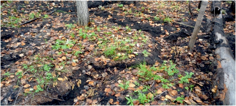 Растительность. На буроземах произрастает березово-осиново-лиственничный разнотравно-брусничный лес с подлеском из рододендрона даурского. Древесный ярус формирует Larix gmelinii (Rupr.) Rupr. Присутствуют в древостое также Populus tremula L. и Betula platyphylla Sukaczev. Древостой имеет средние показатели: 2–4 класса бонитета, сомкнутость крон 0.4–0.6, проективное покрытие крон 40–50%, высота 15–22 м, средний диаметр стволов 16–31 см, неравномерный по густоте стояния стволов. Формула древостоя Л7О3Б1.