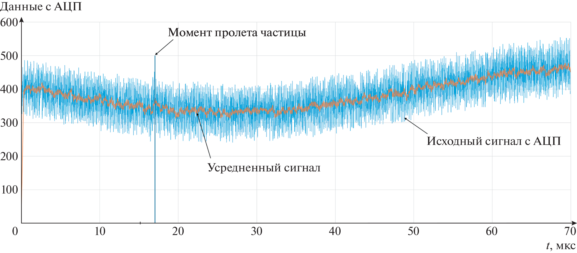 A method and device for detecting transit pulses in the control system of a linear electrodynamic accelerator are described. The structure of an adaptive particle detector and a principle that makes it possible to increase the reliability of detecting a pulse of the expected shape against the background of noise of various origins are presented.