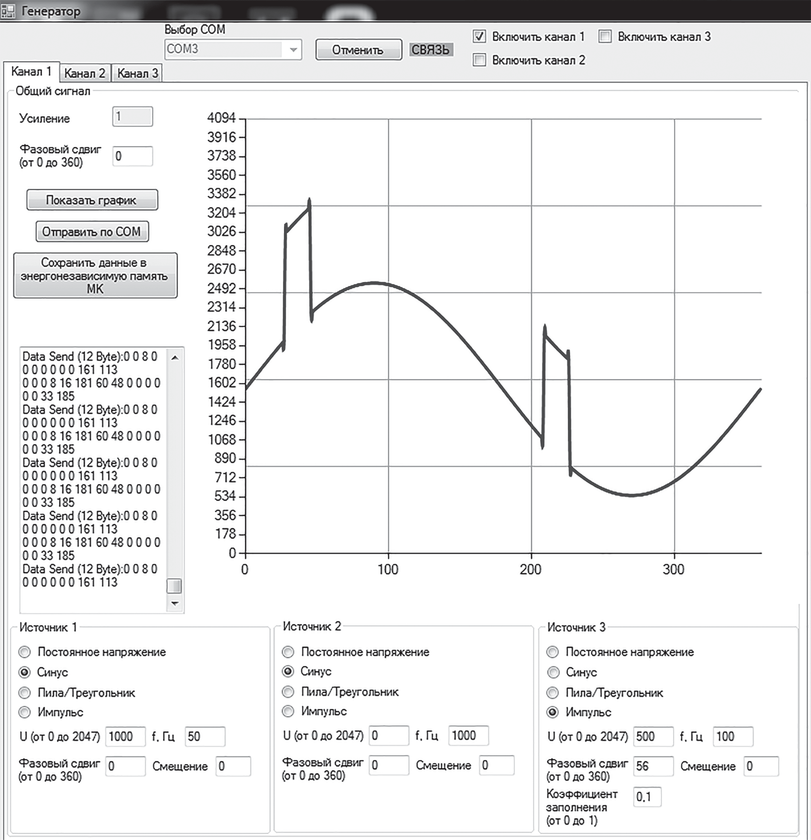 The results from the development of a three-channel arbitrary waveform generator with the function of a programmable power supply for setting up and debugging automatic control system boards for converter devices that require synchronization with the network are presented. The features of the device are the ability to simulate a three-phase distorted network to check and adjust the synchronization of control boards and the presence of galvanic isolation between three channels, which allows for using the generator as a power source for three-phase circuits. The generator provides the formation of output signals for each of the channels in the voltage range ±25 V with a maximum current of up to 2 A. The frequency range of alternating signals of the generator is 0.01–10 kHz. Currently, the generator is used at PAO Elektrovypryamitel to simulate dips, network distortions, and phase imbalances and to tune phase-locked loop systems and analog and digital filters.