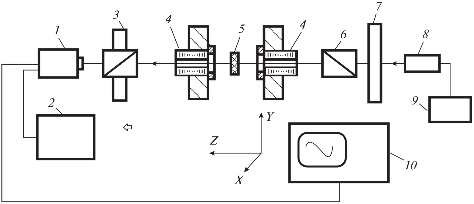 Проведены теоретические и экспериментальные исследования распределения магнитного поля в пространстве между двумя постоянными магнитами цилиндрической формы со сквозными отверстиями в центре. В середине пространства размерами 2 × 2 × 2 мм3 вблизи оси симметрии обнаружено магнитное поле с неоднородностью не более чем 3%, а в области 1 × 1 × 1 мм3 – менее 1%. На основе расчетных и экспериментальных результатов разработана и изготовлена установка для определения постоянной Верде (V) с применением постоянных магнитов из неодима. Определены магнитооптические постоянные для образцов оптической керамики из Tb2O3 и Tb3Ga5O12 на длинах волн 0.628 и 1.06 мкм.