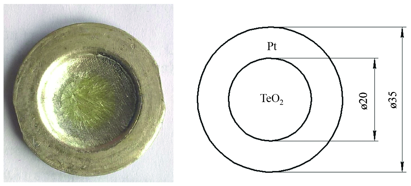Мишень представляет собой слой ТеО2, наплавленный на подложку из Pt (рис. 3). Данная мишень является стандартной для использования в производственном процессе получения 123I и имеет следующие параметры: