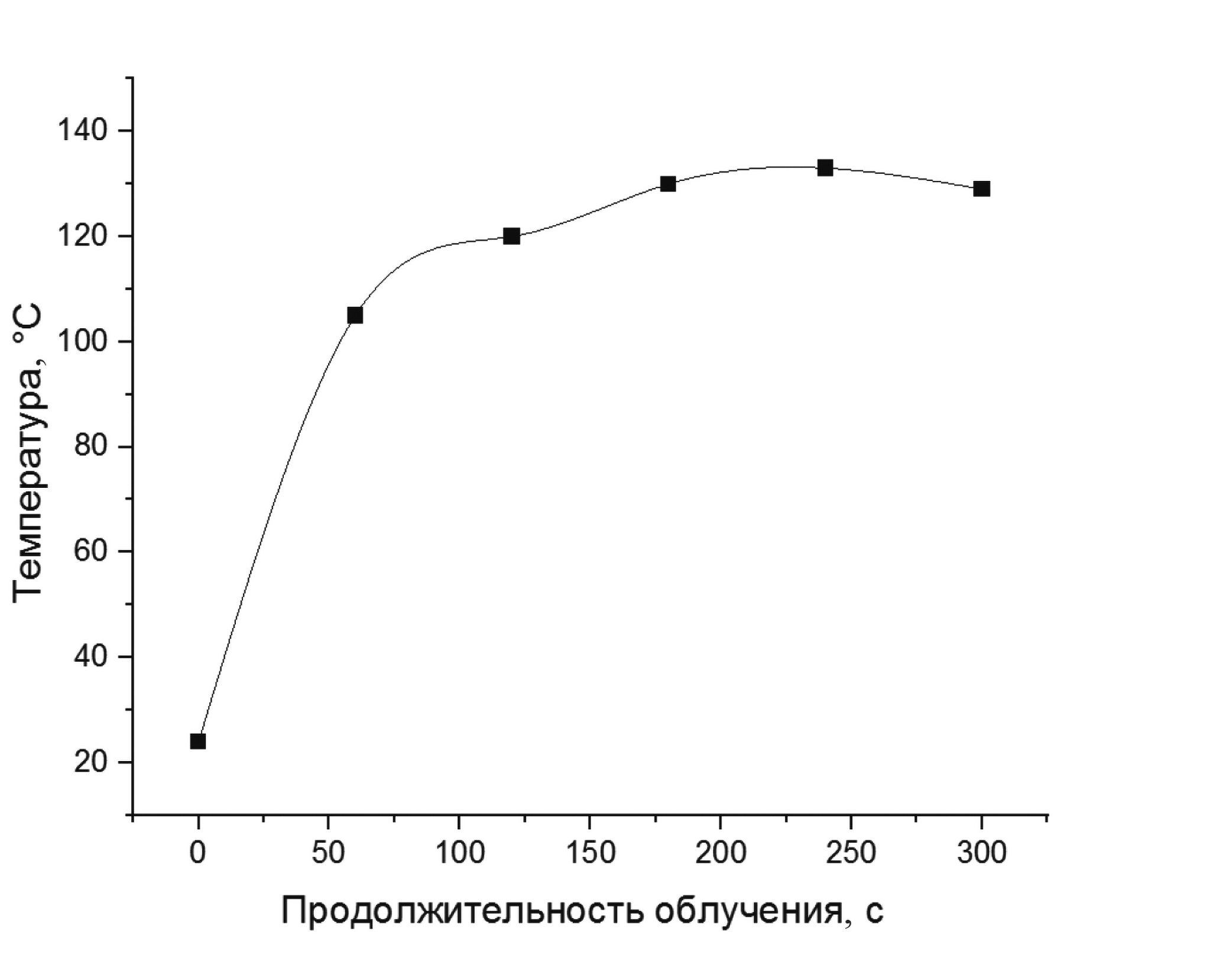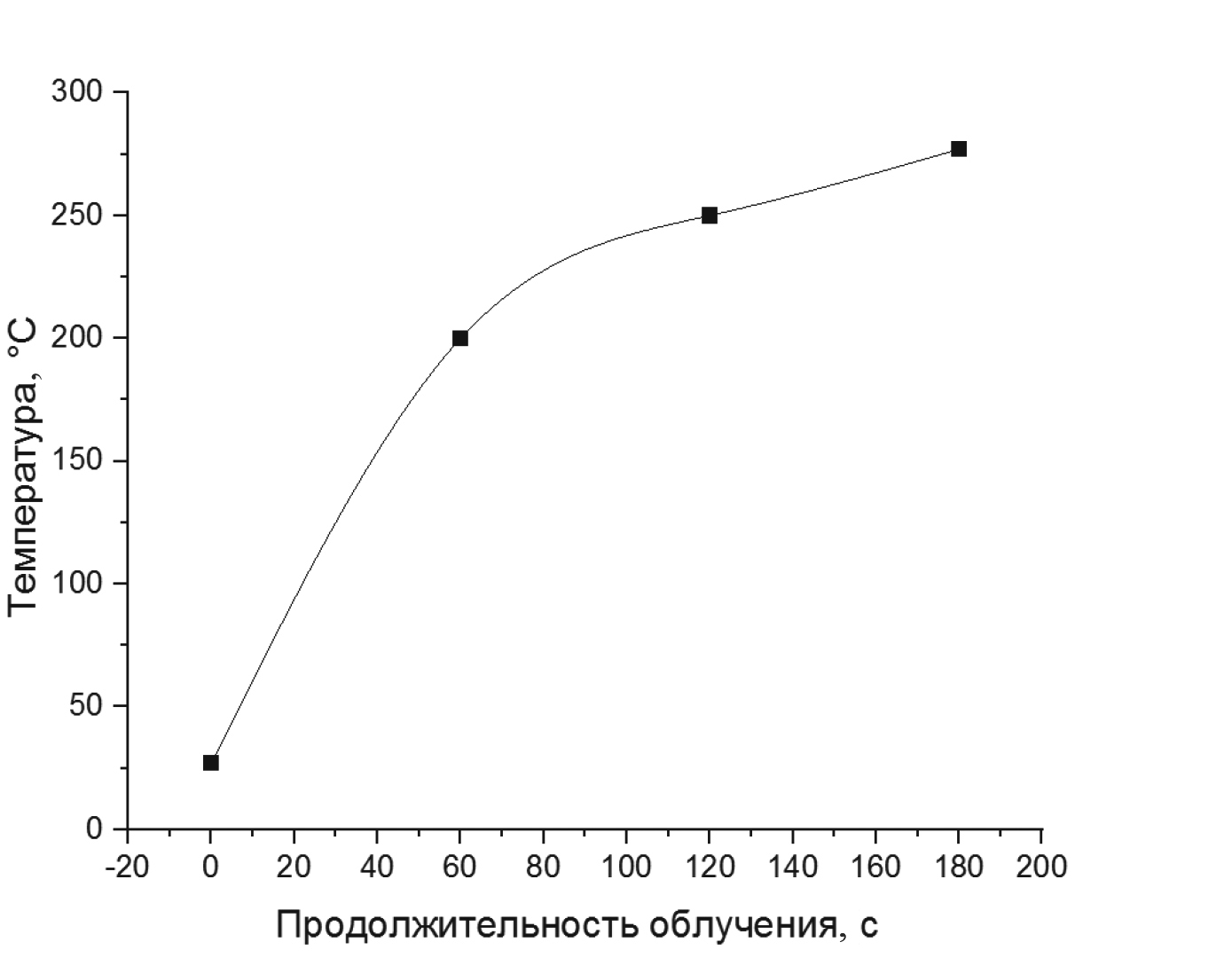 Результаты измерений приведены в табл. 2 и на рис. 4. После установления теплового равновесия была проверена мишень: слой ТеО2 без внешних изменений, что говорит о работоспособности предложенного способа и принципиальной возможности его использования в производственной практике.