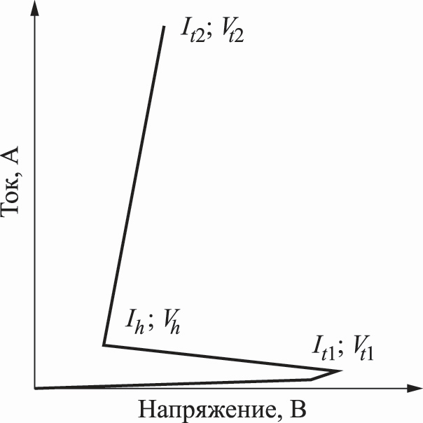 Рис. 1. Типичная ВАХ защитного элемента тиристорного типа.