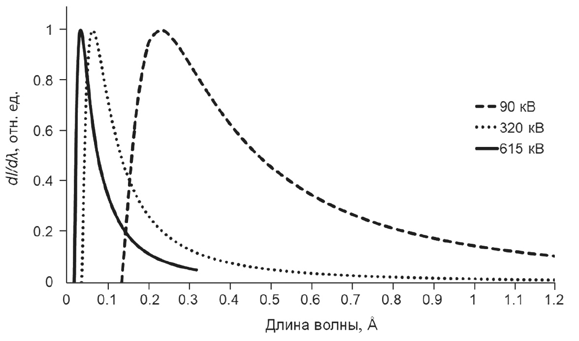 где с – скорость света в вакууме, С – константа, i – ток через рентгеновскую трубку, Z – атомный номер вещества мишени (анода), λ0 – граничная длина волны, зависящая от напряжения на рентгеновской трубке.