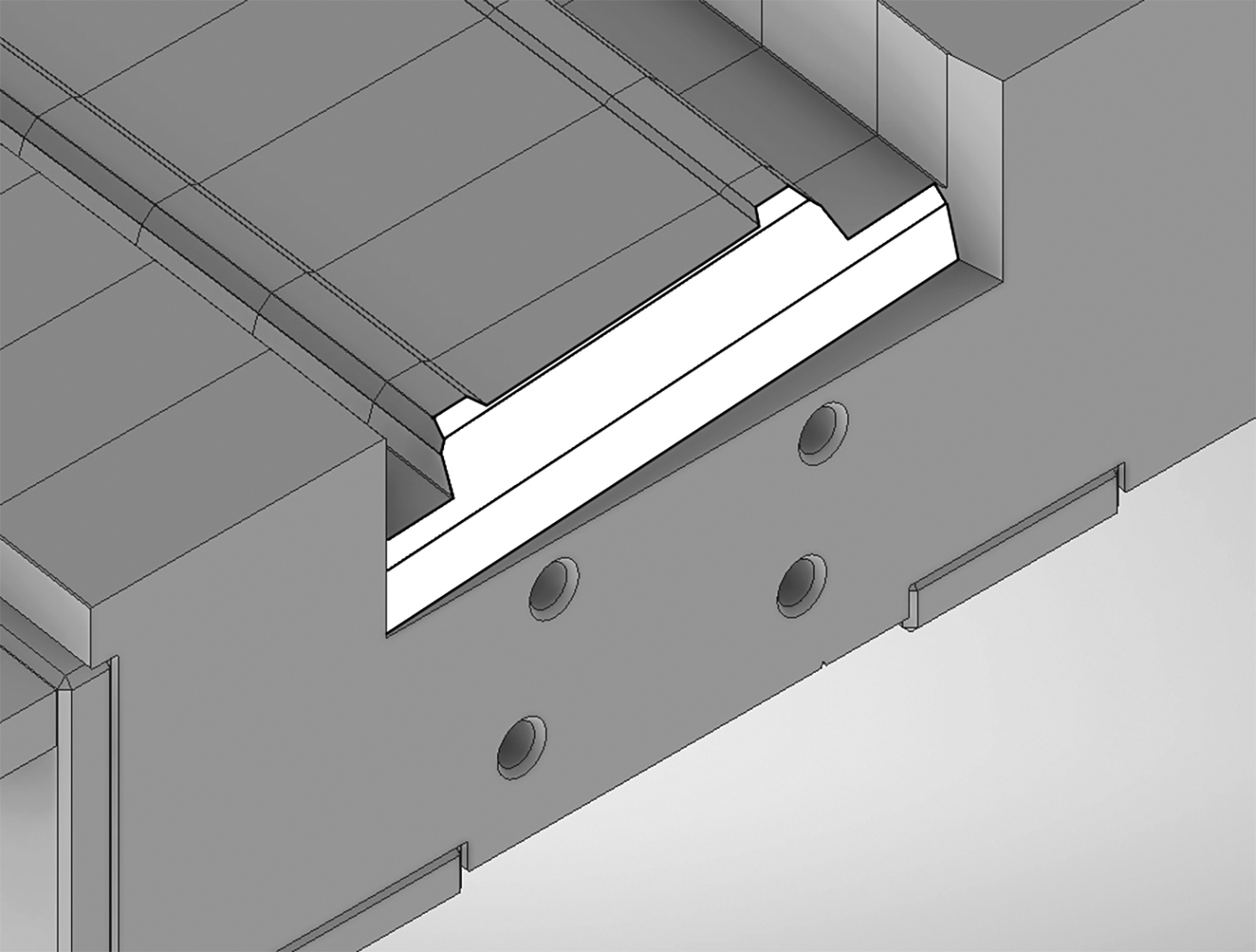Такому подходу способствовала и принятая конструкция магнита. Для обеспечения требований к качеству поля и компактности магнита было принято решение добиваться однородности поля с помощью торцевых фасок на полюсах магнита. На рис. 3 показана торцевая фаска на половине ярма магнита. Фаска максимально упрощенной формы имеет 3 грани и небольшой поворот относительно торца магнита.