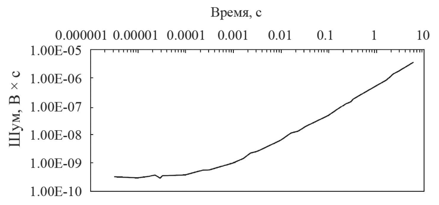 Рис. 5. Шум интеграла VsDC2 в зависимости от времени интегрирования.