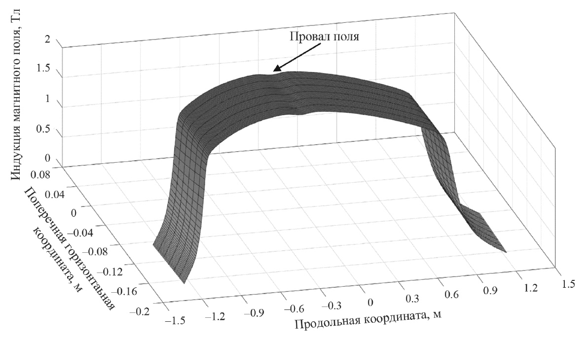Рис. 10. Карта поля с “провалом” посередине магнита.