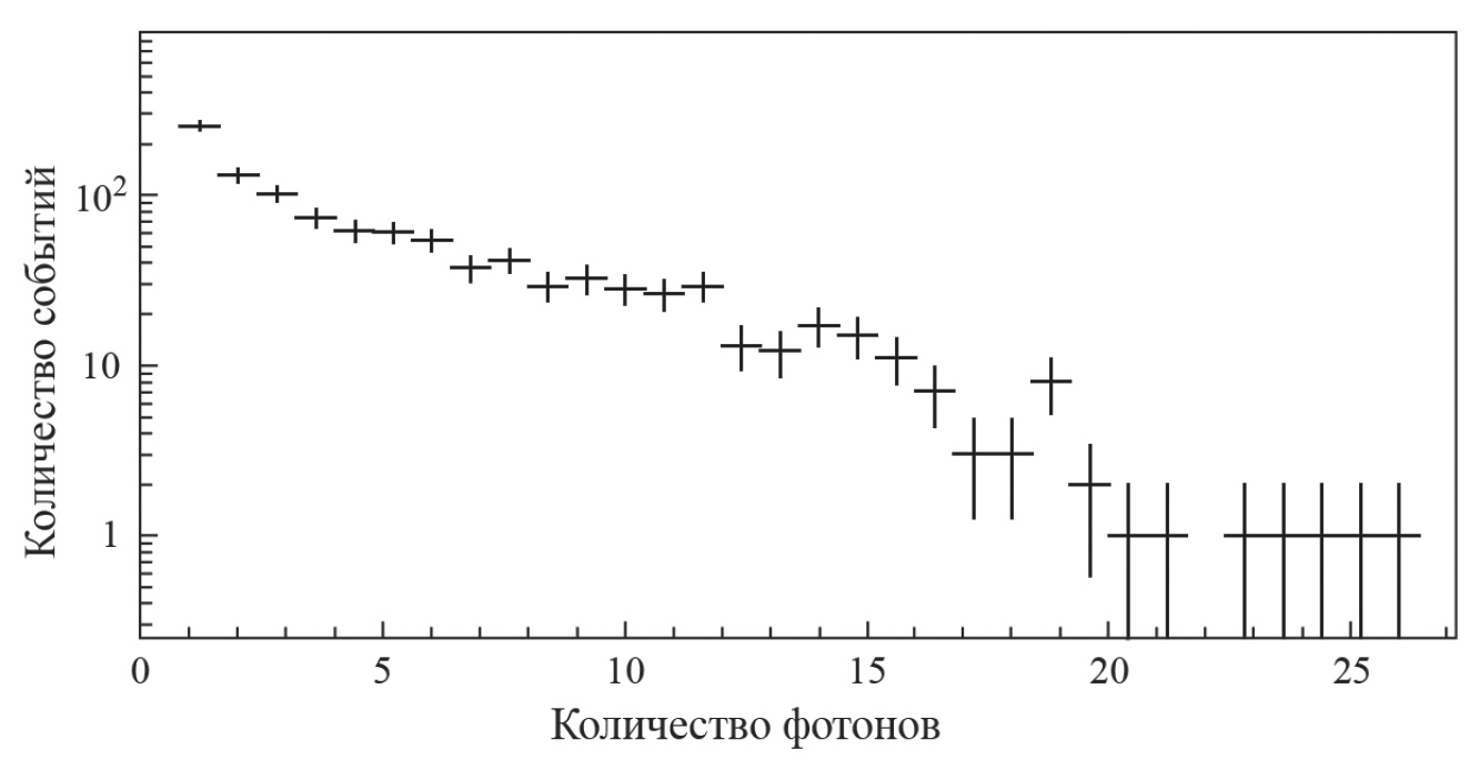 Рис. 5. Зависимость количества событий от величины светового сигнала.