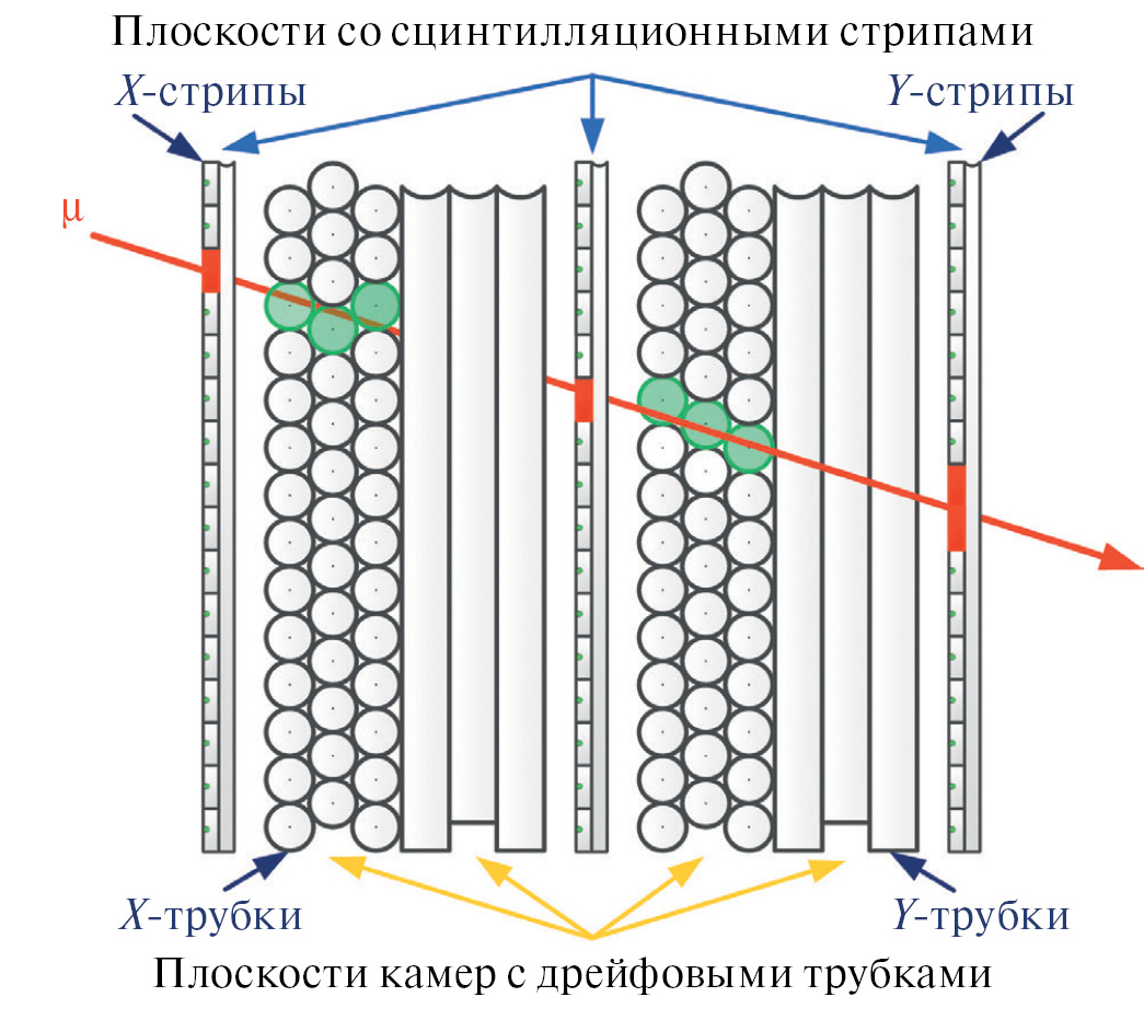 Рис. 1. Схема гибридного мюонного годоскопа.