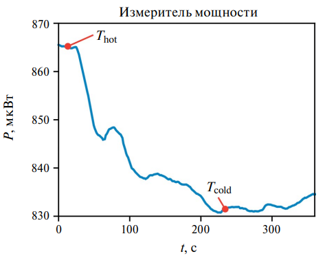 Рис. 3. Мощность на выходе ПЧ при охлаждении чернотельной нагрузки.
