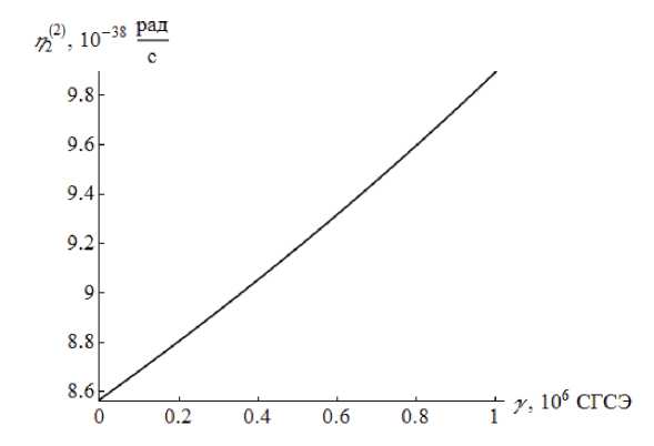 Рис. 6. Зависимость величины поправки декремента затухания капиллярных осцилляций, связанного с излучением электромагнитных волн капли радиуса R = 10 мкм и заряда Q = 2 · 10−5 СГСЭ (~ 0.01Qкр), от удельной проводимости γ.
