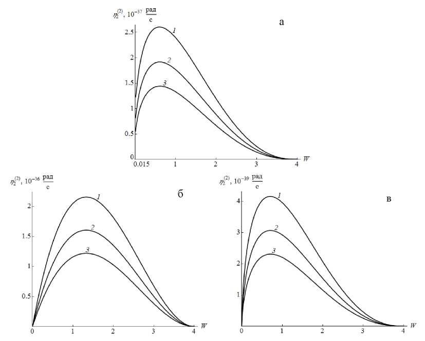 б: Кривые 1–3 соответствуют значениям W = 2, 2.5, 3.