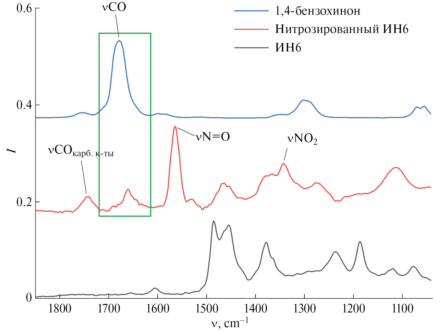 Рис. 12. ИК-НПВО-спектры п-хинона, нитрозированного и исходного ИН6.