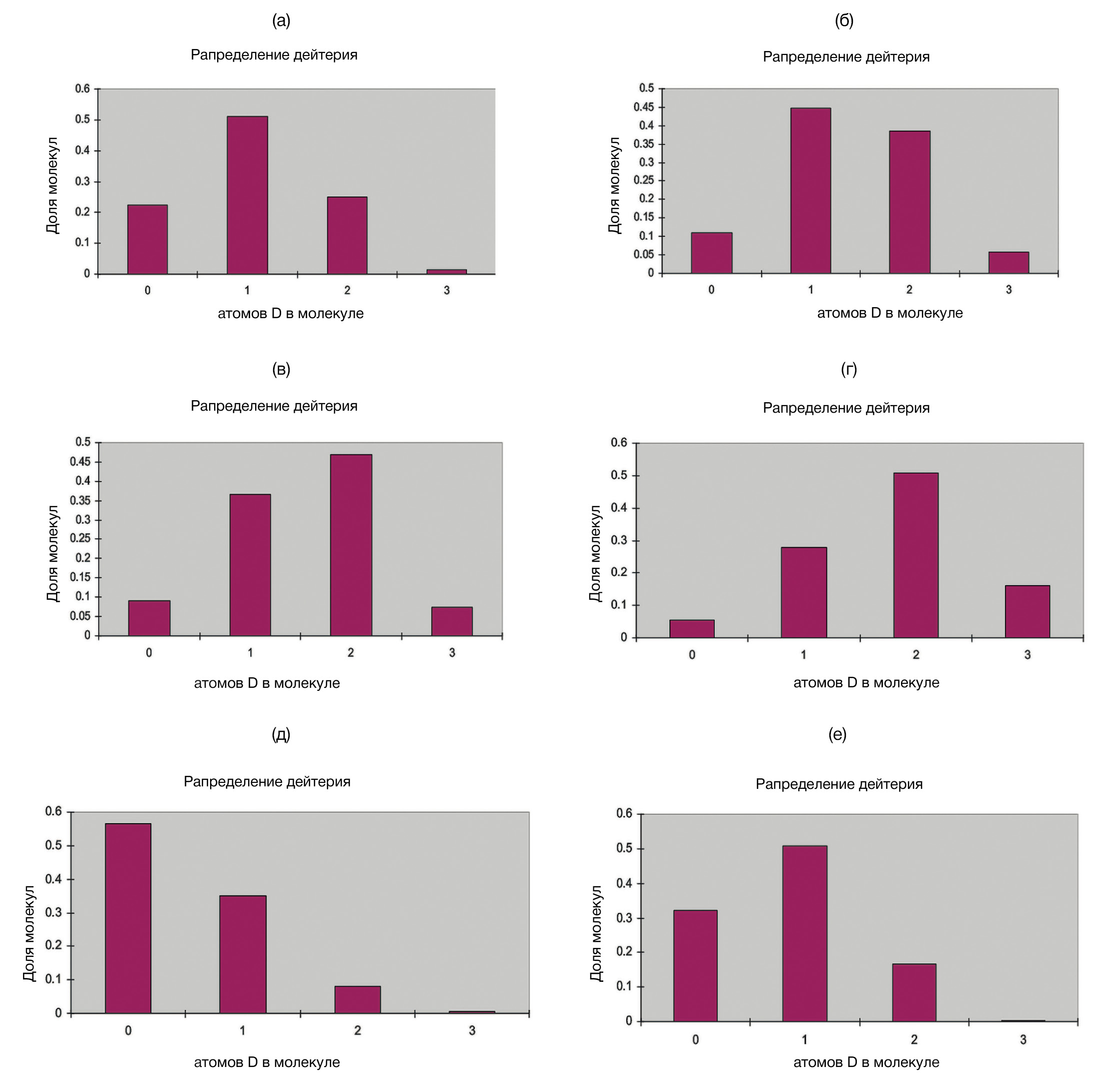 Интересно было проанализировать спектр изотопомеров при разных способах введения дейтерия (рис. 2).