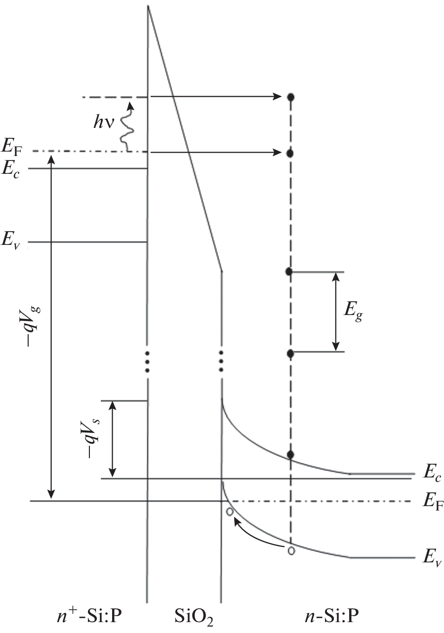 The manifestation of the Franz–Keldysh effect was discovered when illuminated by indirect daylight Al–n+-Si:P–SiO2–(100) n-Si structures with ultrathin (3.7 nm) oxide. It has been shown that the use of backlight even at low field voltages (up to 3 V) leads to an increase in the tunneling current through the oxide compared to the current in darkness by three orders of magnitude. A model of the influence of radiation on the process of electron tunneling through an ultrathin insulating layer has been constructed. At first as a result of the Franz–Keldysh effect, a radiation quantum is captured by an electron and this charge carrier tunnels through the barrier at a higher level compared to darkness. After a charge carrier enters a semiconductor, its energy is sufficient for several events of electron–hole pair production during impact ionization of silicon.