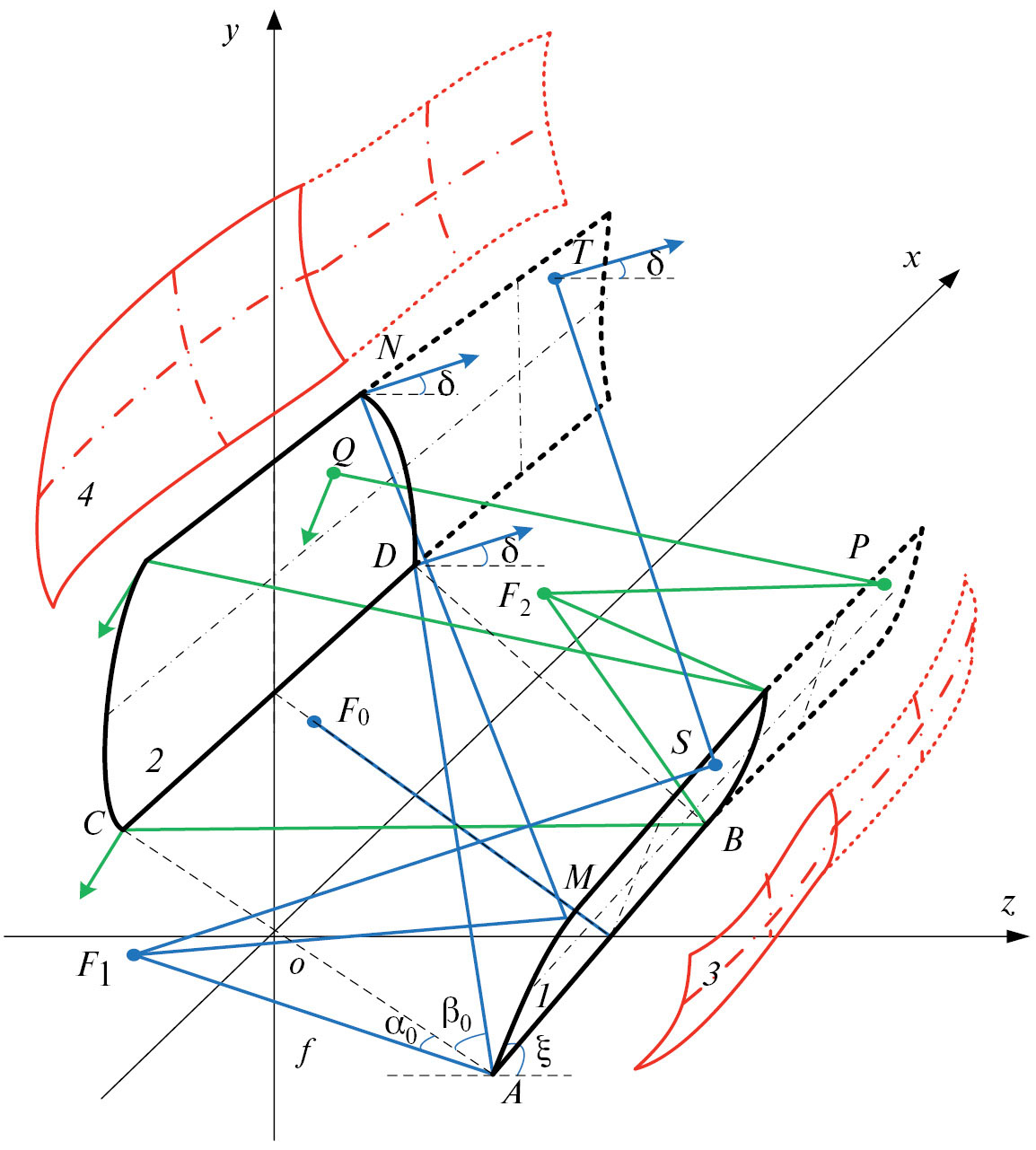 F0S — расстояние от точки F0 до точки S, а – расстояние от точки S до точки T.