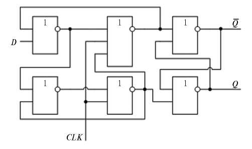 В качестве динамического триггера в работе использовано решение на шести элементах ИЛИ-НЕ [18, 23, 24], его структура показана на рис. 2. Для получения элемента ИЛИ-НЕ необходимо в инвертор добавить на вход параллельно еще один транзистор. Электрические характеристики элемента ИЛИ-НЕ и инвертора идентичны.