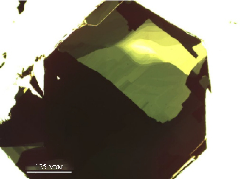 Рис. 1. Оптическая фотография на просвет тонкого кристалла TmTe3.