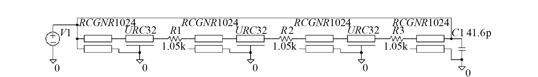 Учитывая эти данные, определим емкость, образованную между концевыми контактами: С1 = 41.6 пФ. Общие сопротивление и емкость модели URC32 соответственно равны 1.4 кОм и 41.6 пФ. Номиналы резистивных элементов R1…R3 равны 1.05 кОм. При расчете параметров модели RCGNR1024 было учтено, что длины этих участков уменьшаются по сравнению с расчетными на размеры контактных площадок, перекрывающих резистивные слои.