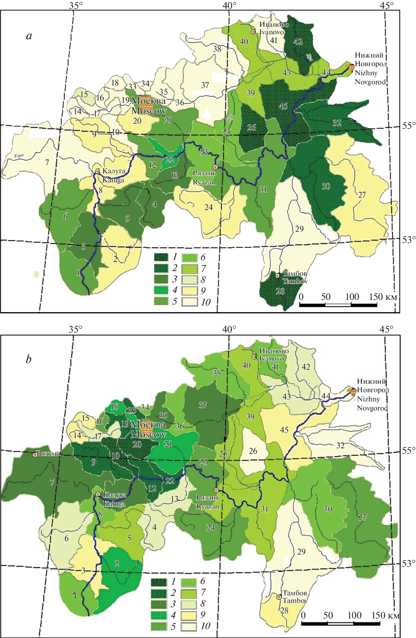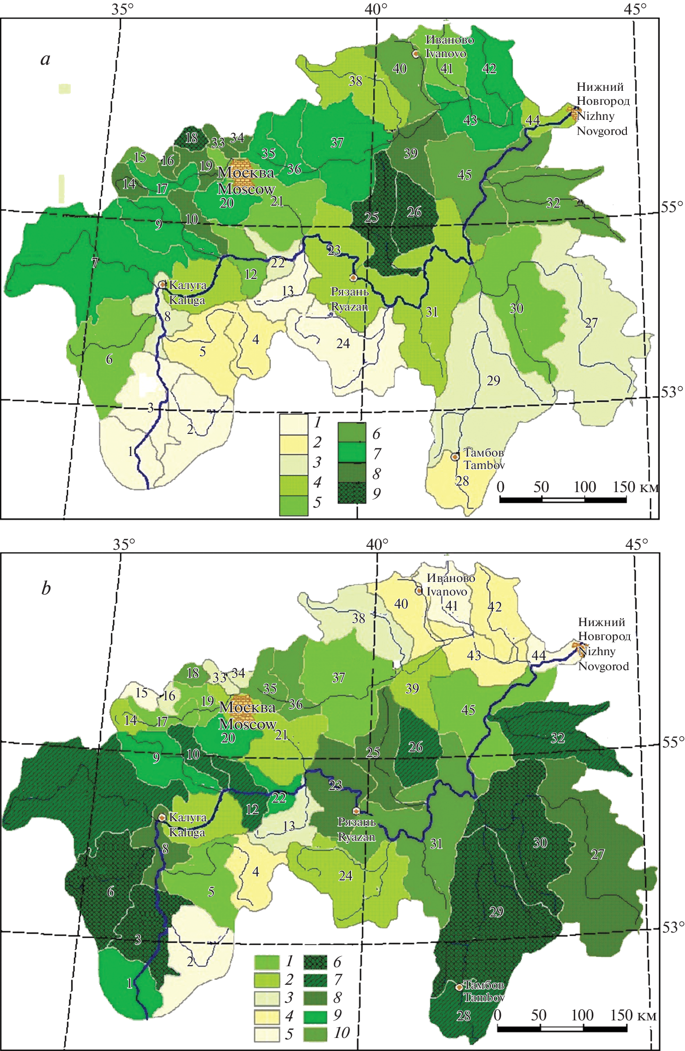 Using satellite sounding data on the forest cover of Russia and three GIS programs, mapping of forest cover and average crown density in the Oka river basin was carried out. Considering hydro-ecological role of forests, these parameters were differentiated according to water management areas. The progressive decline in the wooded areas, thinning and defoliation of forest stands confirm the validity of classifying the Oka river basin as a territory with a catastrophic environmental situation. This is especially true for the forest-steppe zone, where the forest cover ranges from 2.4 to 40%. The average canopy density of the forests in the basin is 50.7%, which makes a significant part of them approaching the state of sparse hemi-xerophytic forests. Using the methods developed by the authors, the indices of the resistance and elastic-plastic stability of forests were calculated and the corresponding maps for the Oka river basin were constructed. It was found that the replacement of primary mixed and broadleaf forests with secondary small-leaved forests leads to a general increase in the dynamism of forest communities: to an increase in their sensitivity to disturbing signals and to an acceleration of ecogenetic successional changes that tend to transfer them to their previous (or new) stable state. The ordination of forest formations of the Oka river basin was carried out according to the gradients of the indices of resistance and elastic-plastic stability. The overwhelming majority of forest formations are characterized by high sensitivity to the initial signals of external disturbances, but at the same time, by sufficiently developed mechanisms of ecogenetic successions, which represent their elastic-plastic stability. This indicates the high reforestation potential of the degraded lands of the Oka basin, which makes it possible to include its forest areas in the global system of biosphere reserves. Two opposite mechanisms exhibiting the known buffer properties of the forest litter have been revealed. In response to the unfavourable impacts, the forest community switches from some leading processes of its functioning to others – from the level of autotrophic biogenesis to the level of detrital metabolism.