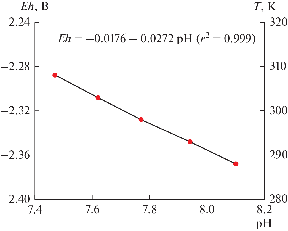 Under practical conditions, one of the possible solutions to the problem of treatment of hydrogen-sulfide-containing industrial wastewater is the electrochemical oxidation of sulfides. In this work, the model system Fe–NaCl–Na2S–H2SO4–H2O is considered, an experimental setup is constructed, and the electrocoagulation process is studied in a wide (288–308 K) range of temperatures of an aqueous solution of hydrogen sulfide. The optimal ratios between the initial components in the system are determined. The experimental and calculated pH of the solution are found. The system is thermodynamically modeled by minimizing the Gibbs energy, and the concentration distribution of individual molecules and other species (cations, anions) in the solution is characterized. Possible chemical reactions in the system Fe–NaCl–Na2S–H2SO4–H2O during the electrocoagulation of hydrogen-sulfide-containing wastewater are identified. Eh–pH diagrams are constructed to compare the redox potentials of the systems Fe–H2O, Fe–H2O–S, and Fe–NaCl–Na2S–H2SO4–H2O based on the determined concentrations of iron- and sulfur-containing particles in the solution. A calculation formula for the redox potential Eh of the system is obtained.