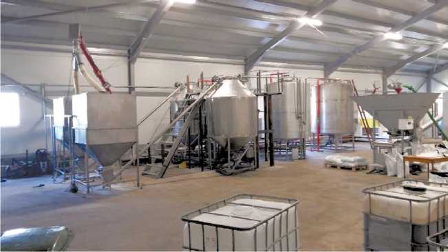 На рис. 3 приведена линия по получению и обработке высоковязких суспензий и эмульсий, механо-ферментативной переработки зерна, лигноцеллюлозного сырья и отходов, дешевых минеральных ресурсов, таких как торф и песок [12]. На таком устройстве производительность процесса получения гибридных органо-неорганических материалов на основе торфа и песка составляет 2–6 т/ч.