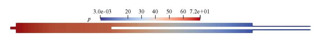 Стационарное течение, параметры которого представлены на рис. 4–6, было достигнуто при 50 безразмерных временных единицах. Шаг по времени определен из условий устойчивости вычислительного алгоритма КГиД системы и составил ~ 0.0055.