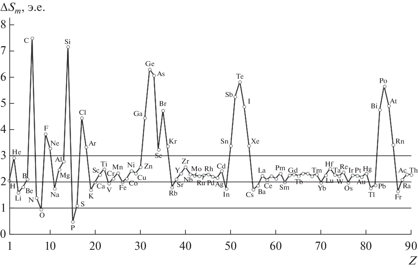 - Katz S.A., Chekhovskoi V.Ya. Entropies of Fusion of Metallic Elements // High Temp. – High Press. 1979. V. 11. № 6. P. 629.