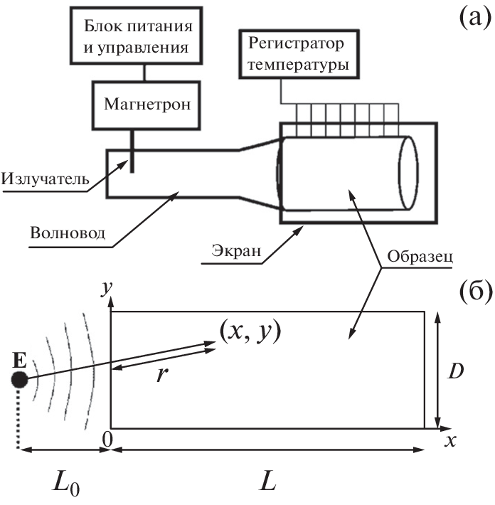 Physical and Mathematical Modeling of the Temperature Distribution Along the Length of Oil Source Rocks under Microwave Irradiation
