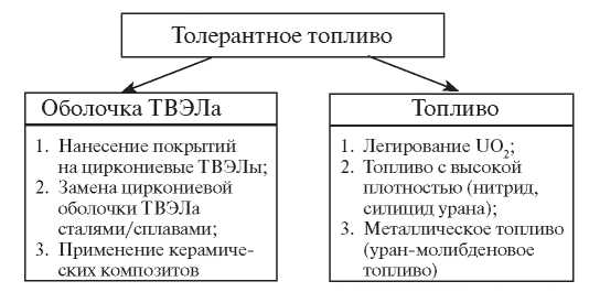 Одно из направлений таких исследований связано с созданием новых материалов топливной матрицы и оболочек ТВЭЛов. Ядерное топливо АЭС с легководными реакторами, создаваемое с использованием новых конструкционных и топливных материалов и обеспечивающее устойчивость топлива к аварийным условиям, в том числе к высокотемпературному окислению оболочек ТВЭЛов в условиях запроектных аварий (ЗПА), в зарубежной терминологии принято называть «accident tolerant fuel» (ATF) [18], или «толерантное топливо» (ТТ).